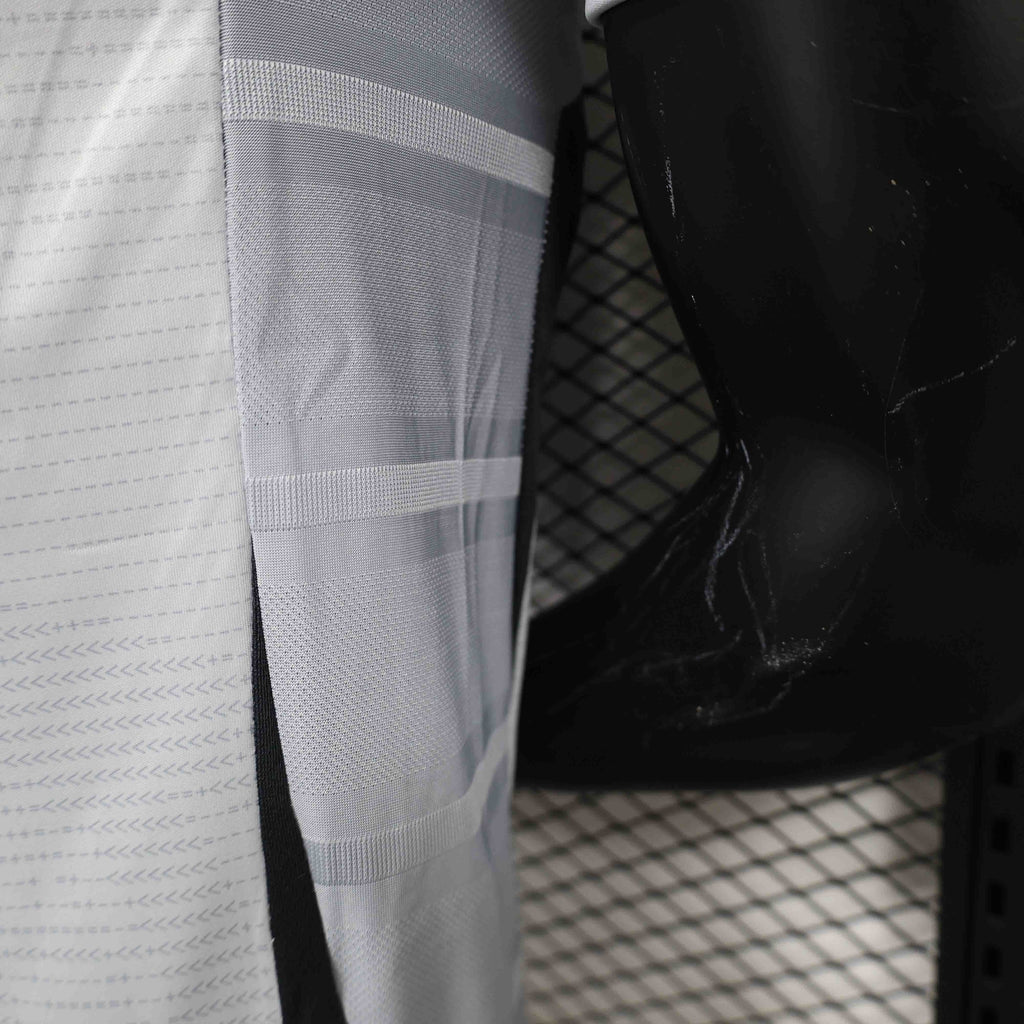 • Escudo e Patrocinadores Silkados: Para leveza e conforto máximos, o escudo do time e os logotipos dos patrocinadores são aplicados em silk (transfer ou emborrachado) de alta qualidade, sem costuras que possam causar atrito, garantindo uma superfície lisa e aerodinâmica.